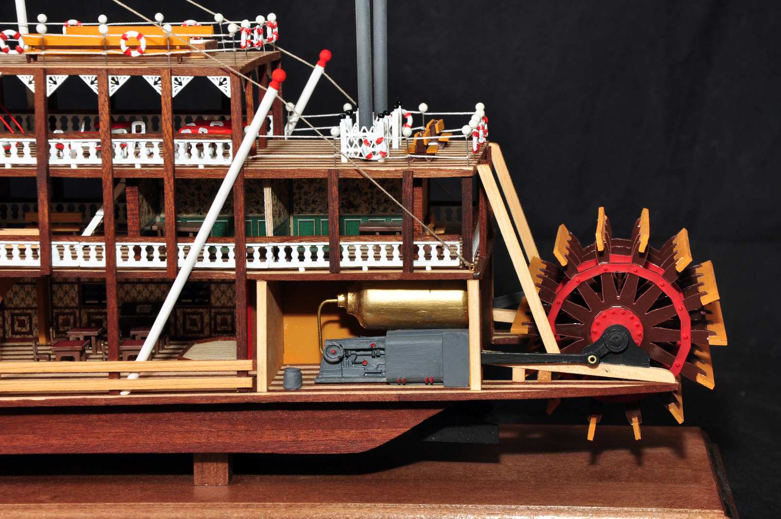 Пароход типа «Миссисипи» — это, прежде всего, уникальная конструкция. У него было абсолютно плоское дно и крайне малая осадка. Капитаны хвастались, что их суда могут пройти «там, где прошла корова, оставив мокрый след». Вместо глубокого киля устойчивость обеспечивалась огромной шириной и мощным набором легких деревянных палуб, надстроенных друг над другом (за что их прозвали «плавучими свадебными тортами»). Сердцем корабля было гигантское гребное колесо — либо одно большое на корме (кормовое колесо), либо два по бокам (боковые колеса). Оно приводилось в движение мощной паровой машиной, работавшей на дровах, которые заготовляли на остановках прямо вдоль берега. Огромные, высокие трубы гордо дымили, оповещая всю округу о приближении гиганта.