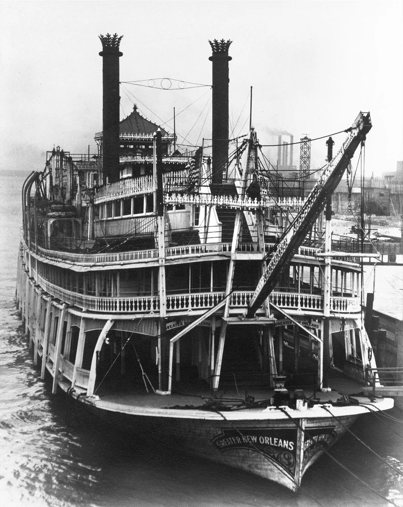 Эти корабли были не просто транспортом, а средоточием всей жизни региона. Палубы делились на два мира: нижние были забиты тюками хлопка, товарами и бедными пассажирами, в то время как верхние поражали роскошью. В «Великом салоне» висели хрустальные люстры, пол был устлан дорогими коврами, а бархатная мебель приглашала к отдыху плантаторов и азартных игроков в покер. Именно этот мир — с его романтикой, опасностями (взрывы котлов были частым делом), гонками между пароходами и специфическим сленгом (например, слово «mark twain», означавшее безопасную глубину в две сажени) — увековечил в своих книгах бывший лоцман Марк Твен. Колесные пароходы превратили реку Миссисипи в главную торговую и культурную артерию страны до тех пор, пока их не вытеснили железные дорог
